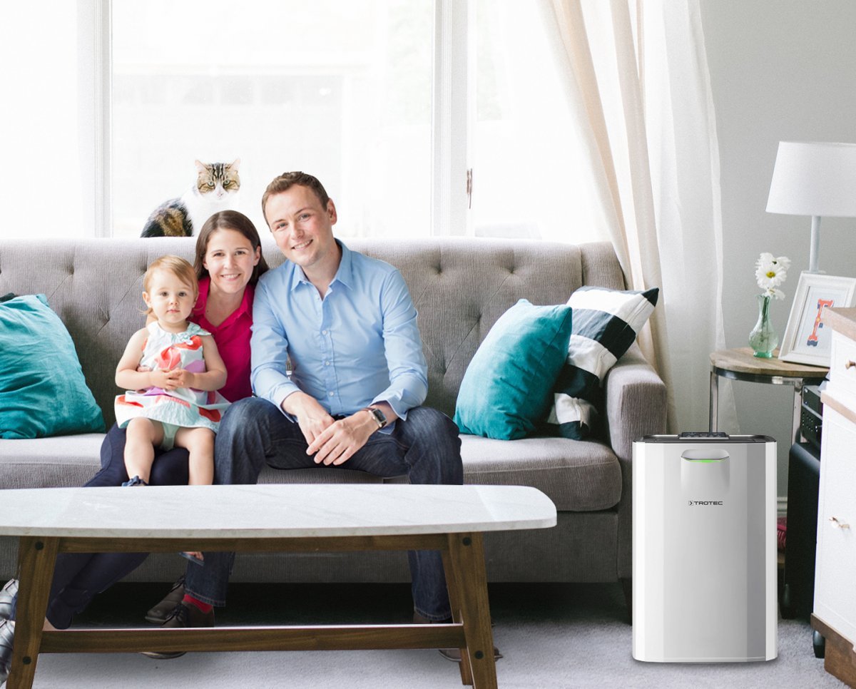 Oro sausintuvas – drėgmės surinkėjas Trotec TTR 57 E yra tinkamas naudoti ne tik namuose, butuose ar biuruose, bet ir rūsiuose, garažuose, vasarnamiuose, kitose mažai šildomose patalpose ar netgi jachtose. Šis oro sausintuvas užkirs kelią kondensato, pelėsių, nemalonių kvapų susidarymui. Vos pažvelgę į sausintuvą, iš karto sužinosite, ar pakankamas drėgmės lygis šiuo metu yra kambaryje, kadangi spalvotas LED ekranas prietaiso priekyje vizualiai parodo esamą drėgmės lygį: