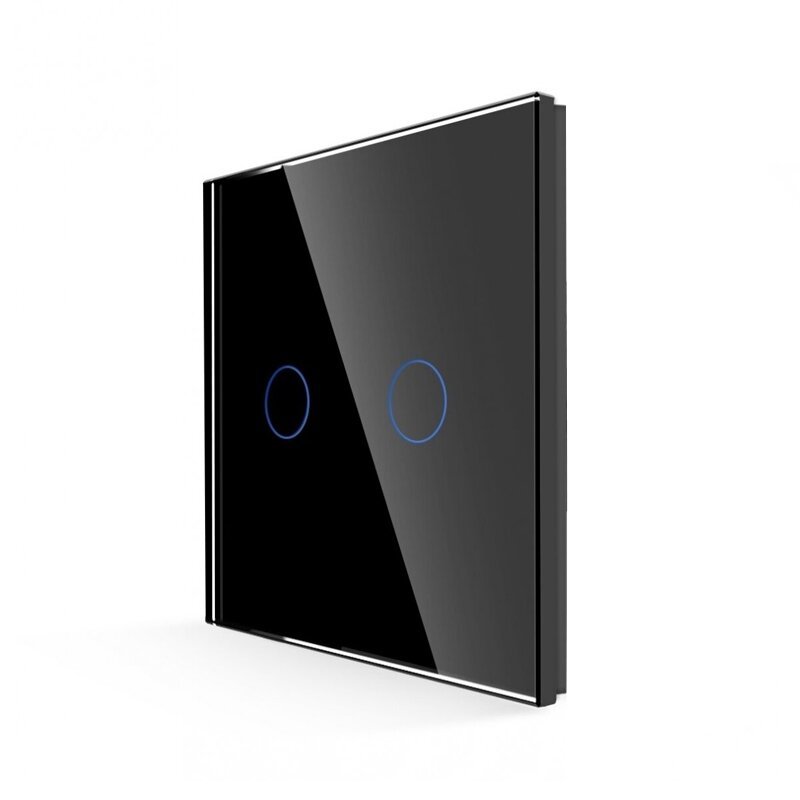 Grūdinto stiklo sensorinis dvipolis jungiklio dangtelis Feelspot FSSD2B gali būti komplektuojamas su bet kuriuo jungikliu, rozete ir kitais lizdais.