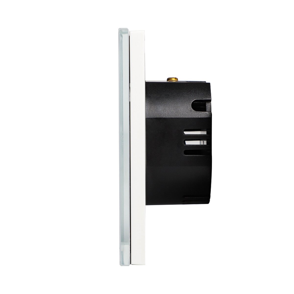 Baltos spalvos stiklinis 500 W sensorinis dvipolis jungiklis Feelspot (komplektas). Baltos spalvos stiklinis sensorinis dvipolis jungiklis pagamintas iš grūdinto stiklo, yra atsparus vandeniui ir ugniai. Aukštos kokybės prietaisas leis mėgautis patogiu valdymu bei paprasta priežiūra. Su modernaus dizaino jungikliu vienu prisilietimu galėsite valdyti apšvietimą patalpoje tada, kada labiausiai to reikia. Dvipolis sensorinis jungiklis Feelspot turi įmontuotą LED indikatorių, kuris rodo kada šviesa yra įjungta/išjungta, o tai padės lengvai rasti jungiklį tamsoje. Paprasto valdymo ir patikimo veikimo dvipolis sensorinis jungiklis Feelspot įgyvendins įvairiausius techninius ir interjero dizaino sprendimus, atitinkančius išrankiausio kliento poreikius.
