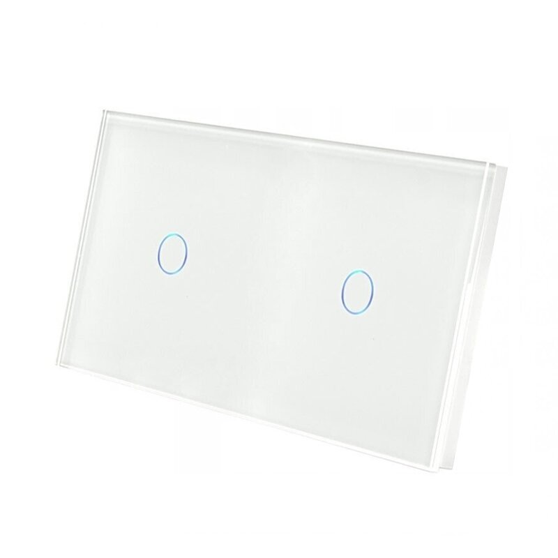 Grūdinto stiklo sensorinis dvivietis vienpolis jungiklio dangtelis Feelspot FSSD211W gali būti komplektuojamas su bet kuriuo jungikliu, rozete ir kitais lizdais.