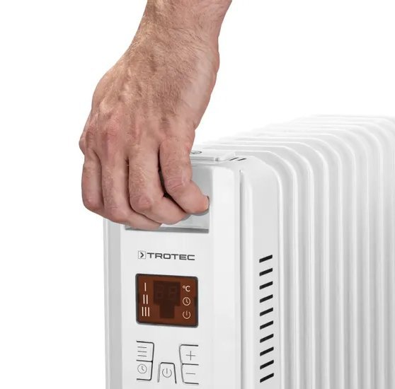 Ieškote būdo kaip papildomai sušildyti patalpas? Elektrinis tepalinis radiatorius Trotec TRH 26 E gali tai padaryti! Kompaktiško dydžio ir klasikinio dizaino tepalinis radiatorius turi 3 šildymo lygius ir 2500 vatų šildymo galią. TRH 26 E modelio radiatorius maksimaliai sušildo iki 30 m² arba 75 m³ dydžio patalpose vos per 8 minutes! Praktiškas nuotolinio valdymo pultas ir 12 valandų laikmačio funkcija užtikrina papildomą patogumą. Modernus LED ekranas parodo iš anksto nustatytą norimą kambario temperatūrą. Šis elektrinis tepalinis radiatorius sušildys Jūsų gyvenamas patalpas, vonios kambarius, laisvalaikio zonas, garaže, rūsyje ir t.t.