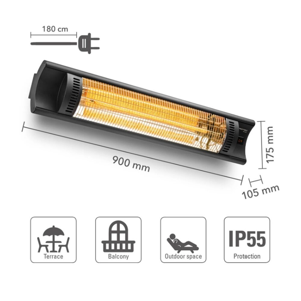 Įspūdingos formos, spalvos ir dydžio matinis juodas infraraudonųjų spindulių šildytuvas IR 2005 yra skirtas nesudėtingam balkonų, terasų, mugių ir turgaus stendų, lauko renginių, sėdimų ir stovimų zonų šildymui lauko gastronomijoje, taip pat panašioms vietoms, kuriose yra tik mažas vietos poreikis. Ar šaltą žiemą, ar pavasarį, kai temperatūra vis dar gaivi, ar netikėtai vėsiomis vasaros naktimis – spindulinis šildytuvas IR 2005 su skaitmeniniu ekranu ir nuotolinio valdymo pultu praturtina lauko zonas malonia vasaros temperatūra visus metus, neužimdamas daug vietos.