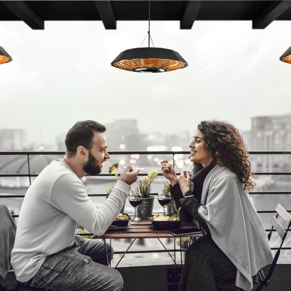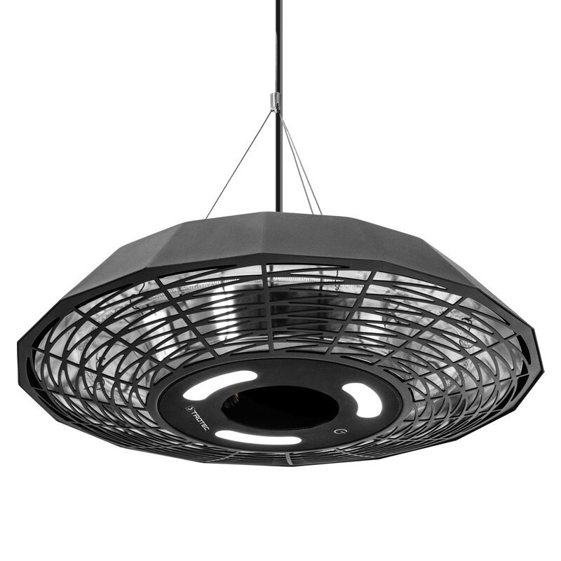 Halogeninis infraraudonųjų spindulių šildytuvas Trotec IR 2010 SC – 2000 W galingumo šildytuvas su integruotu LED stalo apšvietimu ir nuotolinio valdymo pultu. Geometrinės formos lubų šildytuvas Trotec IR 2010 SC ne tik stilingo dizaino, bet ir funkcionalus. Sukurtas atvirų lauko patalpų šildymui – matinės juodos spalvos ir daugiakampio dizaino spindulinis šildytuvas suteikia greitą bei malonią infraraudonųjų spindulių šilumą sėdimoms ir stovimoms erdvėms lauko restoranuose, balkonuose ir terasose.