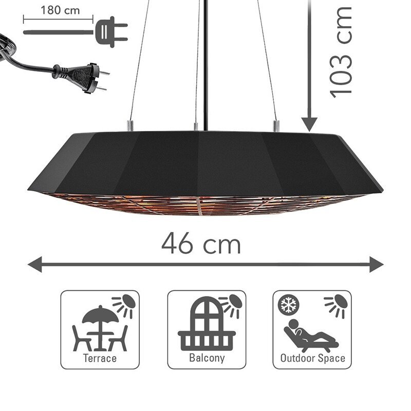 Lietui atsparus pakabinimas šildytuvas Trotec IR 2010 SC pagamintas iš milteliniu būdu dengto aliuminio, bei atitinka IP45 apsaugos klasę. Nuo 46cm pločio šildytuvo šiluma sklinda 360 ° žemyn – tikslingai šildomas iki 12m2 plotas. Priešingai nuo kitų lauko šildytuvų, IR 2010 SC pirmiausia šildo odą ir kitus paviršius, o ne aplinkos orą. Dėl šio veikimo principo jis šildo pastebimai intensyviau ir efektyviau nei kitos šildymo technologijos nesukeldamas nemalonių kvapų ar triukšmo.