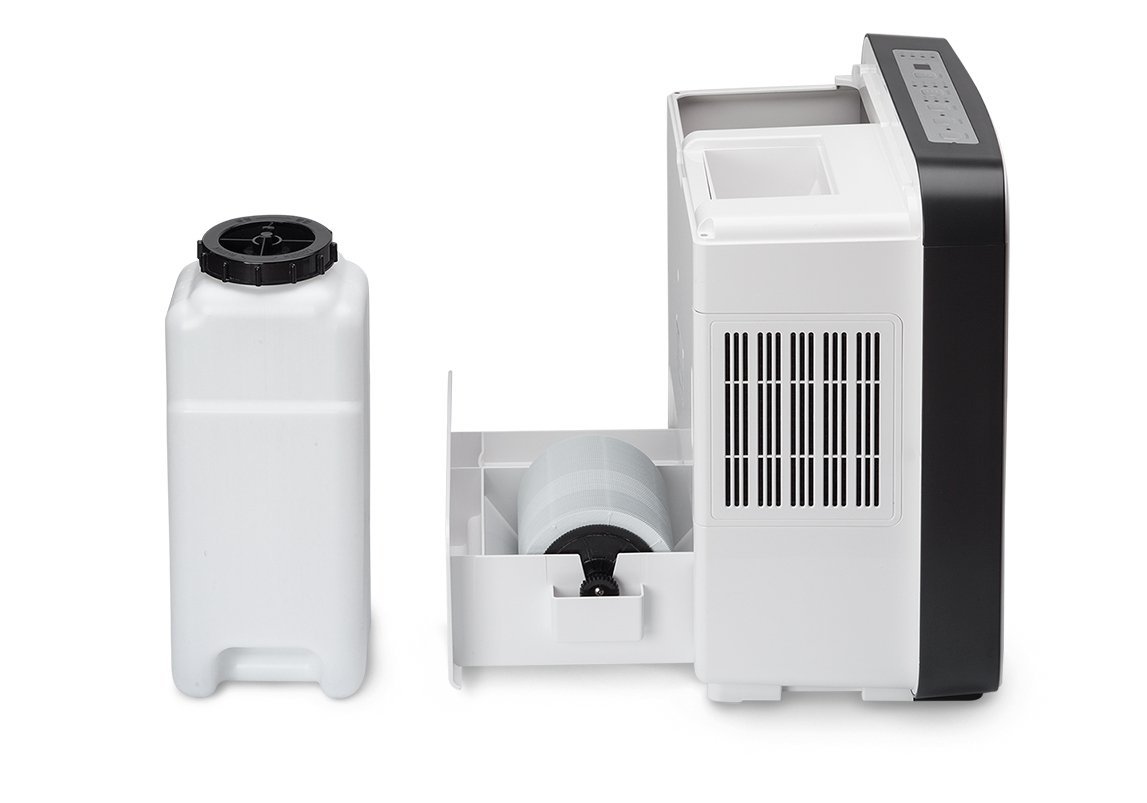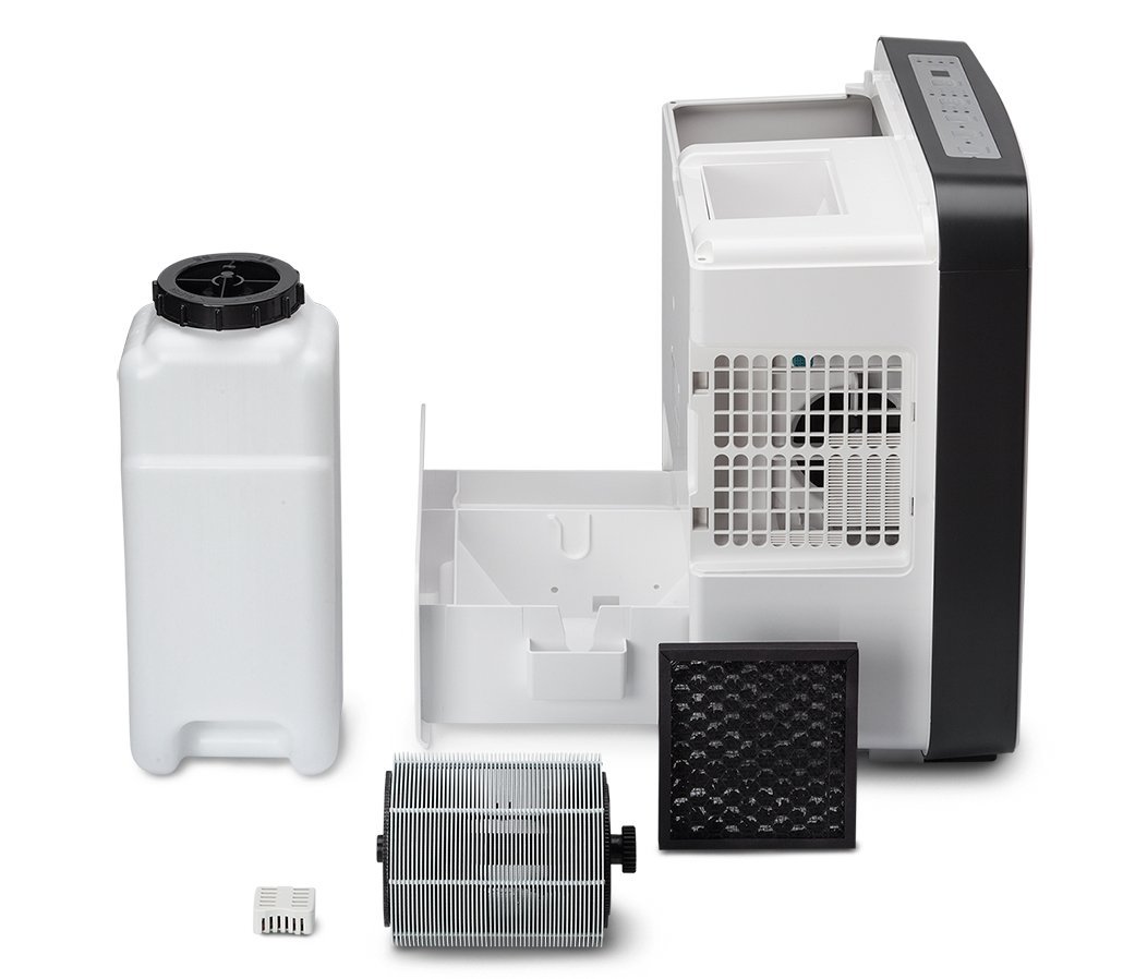 Ventiliatorius įtraukia užterštą ir sausą orą, kuris pirmiausiai yra perfiltruojamas per aktyviosios anglies priešfiltrį, o tuomet nukreipiamas per besisukančius drėkinimo diskus su oro įtraukimo briaunelėmis. Išfiltruotas oras yra natūraliai išvalomas, tad prilygsta orui išvalytam lietaus ar vandens krioklio. Mažiausios, iki 10 mikrometrų dalelės, yra surenkamos. Sistema veikia be kasetinių filtrų, tad yra ypatingai higieniška dėl antimikrobinio vandens filtro.