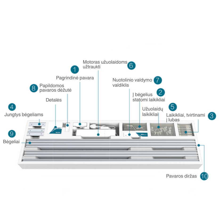 - Automatinis užuolaidų atidarymas ir uždarymas nustatytu laiku;