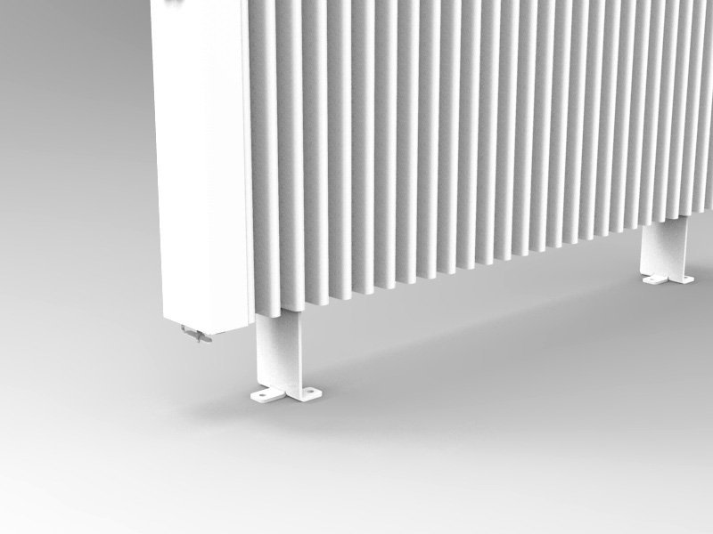 Prisukamos prie grindų kojelės skirtos radiatoriams „AeroFlow“, išskyrus SLIM TALL 1600 modelį. Stabilus metalinis rėmas garantuoja tvirtą stovą ir neleidžia prietaisui apvirsti.
