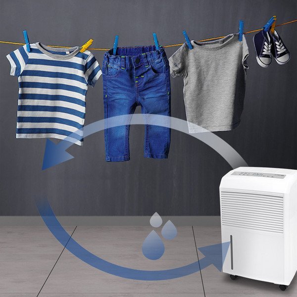 Be oro sausinimo funkcijos, oro sausintuvas Trotec TTK 90 E gali būti naudojamas skalbinių džiovinimui, net visiškai pakeičiant įprastą džiovyklę – tereikia nusistatyti norimą santykinį drėgmės lygį (46 % – tinkami dėti į spintą, 58 % – tinkami lyginti, 65 % – apysausiai). Oro sausintuvas – drėgmės surinkėjas Trotec TTK 90 E turi integruotas visos komforto klasės funkcijos: laikmatį, dviejų lygių ventiliatorių, apsaugą nuo išsiliejimo bei automatinio išjungimo funkciją ir lengvai išimamą ir plaunamą oro filtrą. Nuolatiniam sausinimui integruota drenažo jungtis, leidžianti prietaisui neprižiūrimai ir nepertraukiamai veikti bei turėti mažesnes energijos sąnaudas.