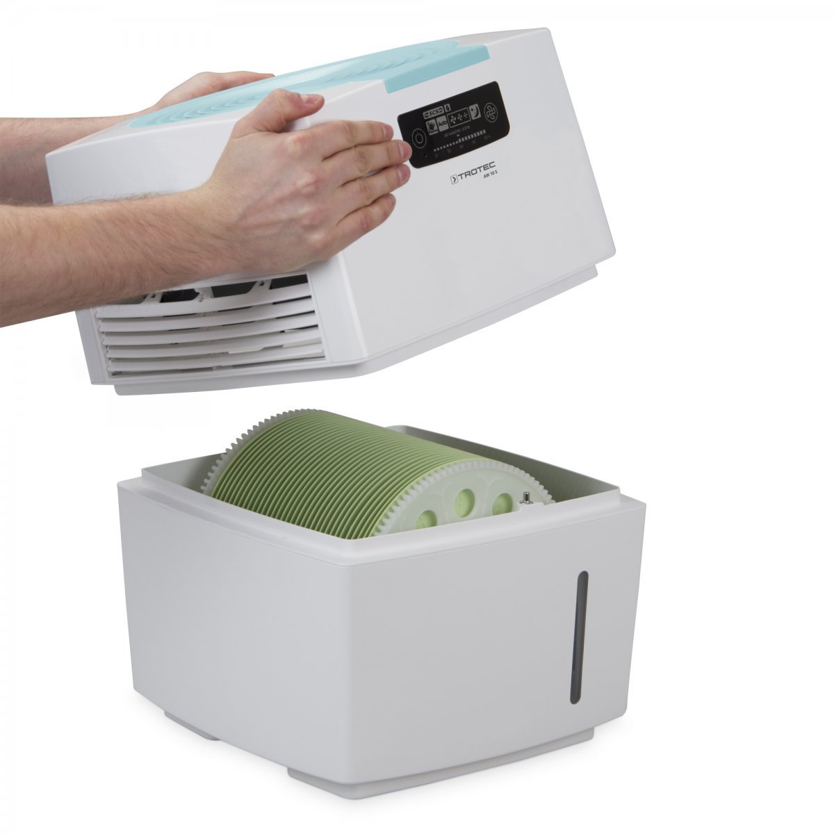 Patogus valdymas ir visų funkcijų valdymo ekranas valdymo skydelyje – standartinis šio įrenginio bruožas. Ekranas papildomai informuoja apie esamą drėgmės lygį patalpoje bet kuriuo metu. Prietaiso valymas yra toks pats paprastas kaip jo valdymas, ir reikia tik keleto žingsnių. Prietaisas lengvai išardomas ir greitai išvalomas. Oro drėkintuvas – valytuvas Trotec AW 10 S pasižymi ekonomišku veikimu: dirba be filtrų, valo orą ir jį drėkina pats reguliuodamas vėsaus garo skleidimą.