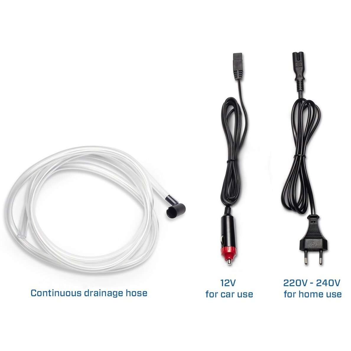 Įrenginys išsijungia automatiškai, kai vandens bakas prisipildo, o ekrane užsidega LED indikatorius. Vandens rezervuare susikaupusį kondensatą taip pat galima išleisti tiesiogiai, prijungus komplektacijoje esančią išleidimo žarną. Tai reiškia, kad sausintuvas CA-703W yra tinkamas nuolatiniam darbui ir be priežiūros.