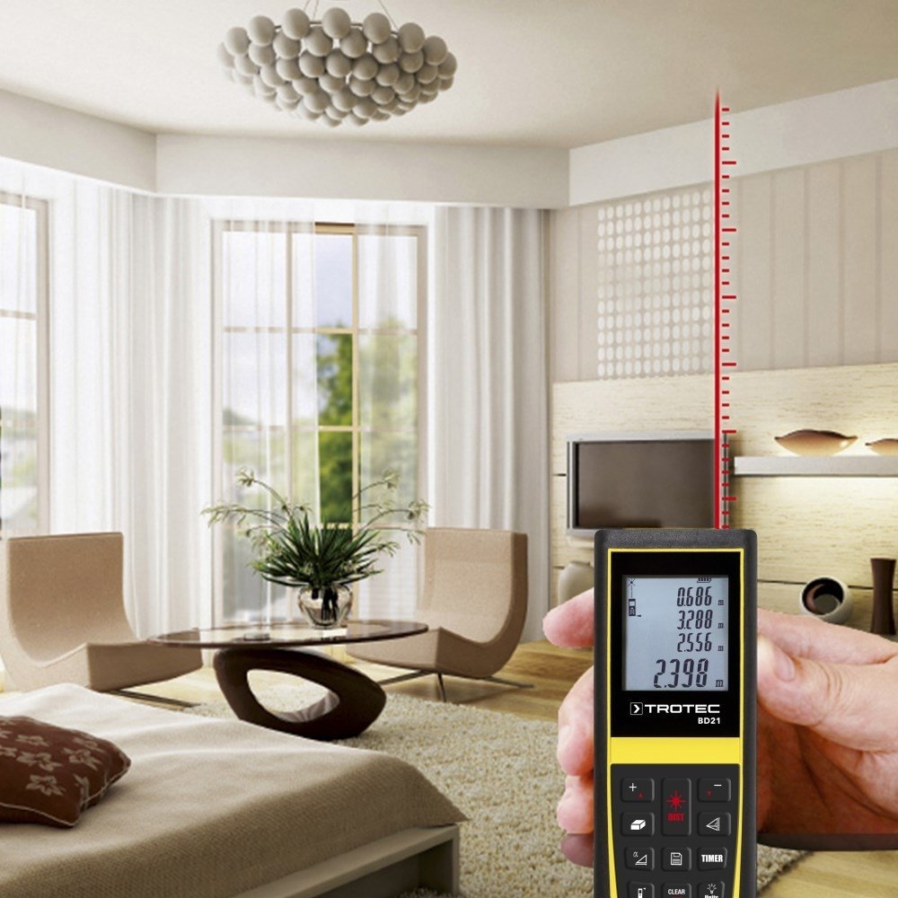 Priešingai nei nepatogūs klasikiniai matavimo prietaisai, tokie kaip sulankstomos liniuotės ar matavimo ruletės, BD21 pateiks jums teisingus rezultatus, tad galėsite lengvai apskaičiuoti savo darbui reikalingų medžiagų, pvz., sienų dažų, parketo ar plytelių, kiekius.