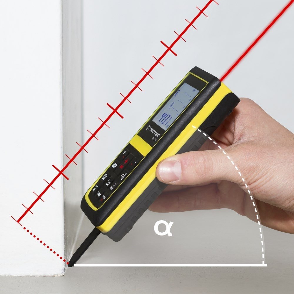 Naudodamiesi šiuo patogiu matavimo prietaisu vieno mygtuko paspaudimu galėsite greitai ir patogiai įvertinti atstumus, plotus ir apimtis net ir sunkiai prieinamose vietose.