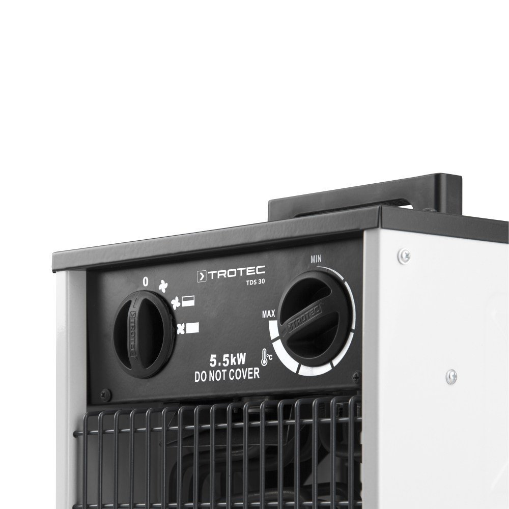 Trapecijos tipo nešimo rankenos leidžia 400 V modelius uždėti vieną ant kito keliomis eilėmis, tačiau jie vis tiek išlieka stabilūs. Kaip standartinė įranga montuojamas oro slopintuvas optimizuoja šilumos išleidimą ir garantuoja maksimalų našumą. 100% Trotec, t.y. TDS serijos elektrinius šildytuvus galima įsigyti tik iš Trotec!