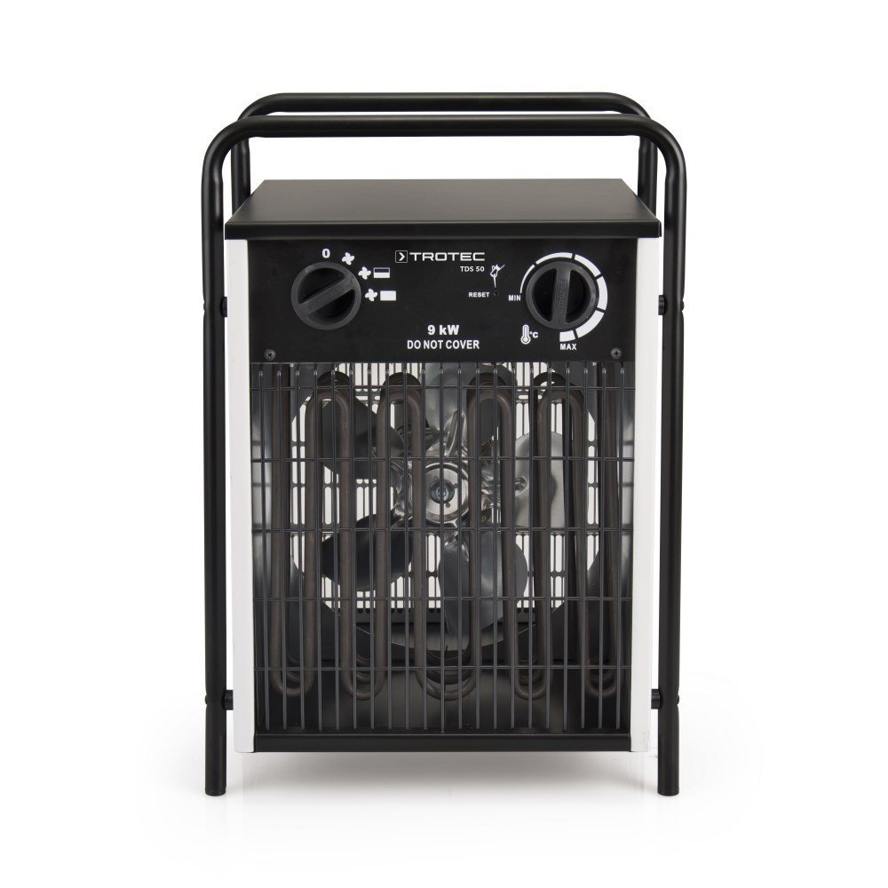 Trapecijos tipo nešimo rankenos leidžia 400 V modelius uždėti vieną ant kito keliomis eilėmis, tačiau jie vis tiek išlieka stabilūs. Kaip standartinė įranga montuojamas oro slopintuvas optimizuoja šilumos išleidimą ir garantuoja maksimalų našumą. 100% Trotec, t.y. TDS serijos elektrinius šildytuvus galima įsigyti tik iš Trotec!