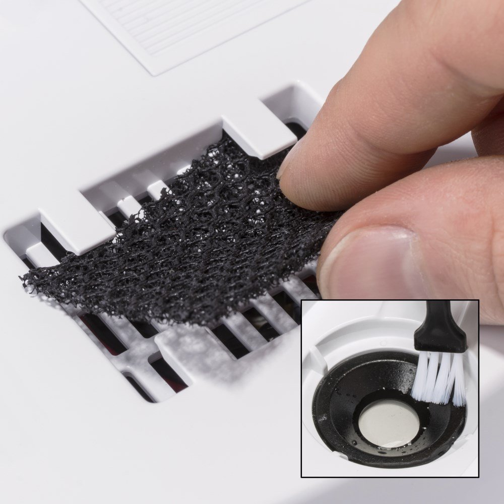 Pasiekus optimalų drėgmės lygį ar ištuštėjus vandens rezervuarui, oro drėkintuvas automatiškai išsijungia. Priekyje esantis šviesos diodas mirksi, rodydamas, kad vandens bakelį reikia papildyti. O jeigu reikia išvalyti įrenginį, drėkintuvą galima išardyti akimirksniu.