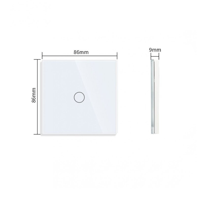 Baltos spalvos stiklinis sensorinis vienpolis jungiklio dangtelis Feelspot FSSD1W (be lizdo). Baltos spalvos stiklinis sensorinis vienpolis jungiklio dangtelis pagamintas iš grūdinto stiklo, yra atsparus vandeniui ir ugniai. Aukštos kokybės prietaisas leis mėgautis patogiu valdymu bei paprasta priežiūra. Su modernaus dizaino jungikliu vienu prisilietimu galėsite valdyti apšvietimą patalpoje tada, kada labiausiai to reikia. Vienpolis sensorinis jungiklis Feelspot turi įmontuotą LED indikatorių, kuris rodo kada šviesa yra įjungta/išjungta, o tai padės lengvai rasti jungiklį tamsoje. Paprasto valdymo ir patikimo veikimo vienpolis sensorinis jungiklis Feelspot įgyvendins įvairiausius techninius ir interjero dizaino sprendimus, atitinkančius išrankiausio kliento poreikius.